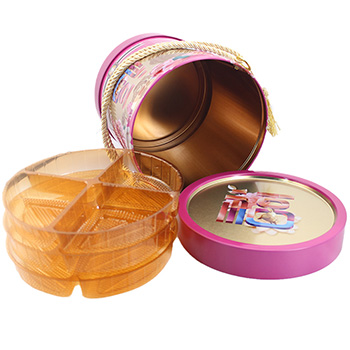 此款粉色珍情珍意月餅鐵盒的尺寸為∮220*265mm,為了順應(yīng)多樣化的市場包裝需求,這款茶葉馬口鐵盒可做成心形、正方形、橢圓形、車形、書本形等異形造型。