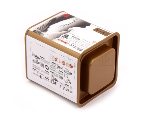 該款方形黃山毛峰茶葉鐵罐的制作基材是國產(chǎn)一級馬口鐵打造而成,選用單面四色印刷工藝,盒面過光油,盒內(nèi)過金油,在美化外觀的同時,也起到了保護鐵罐的作用。
