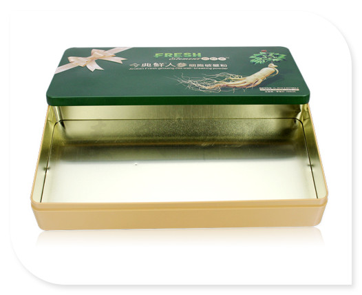 此款人參破壁粉鐵皮盒為精美的醫藥保健包裝產品。是一款定制型的金屬包裝制品。在鐵盒結構上采用四片式內塞蓋結構,盒內可定制金箔紙蓋或配套紙托產品,可提升罐內產品的密封性能。此款鐵盒外表面有作雕刻工藝,將版面圖案更顯紋路。